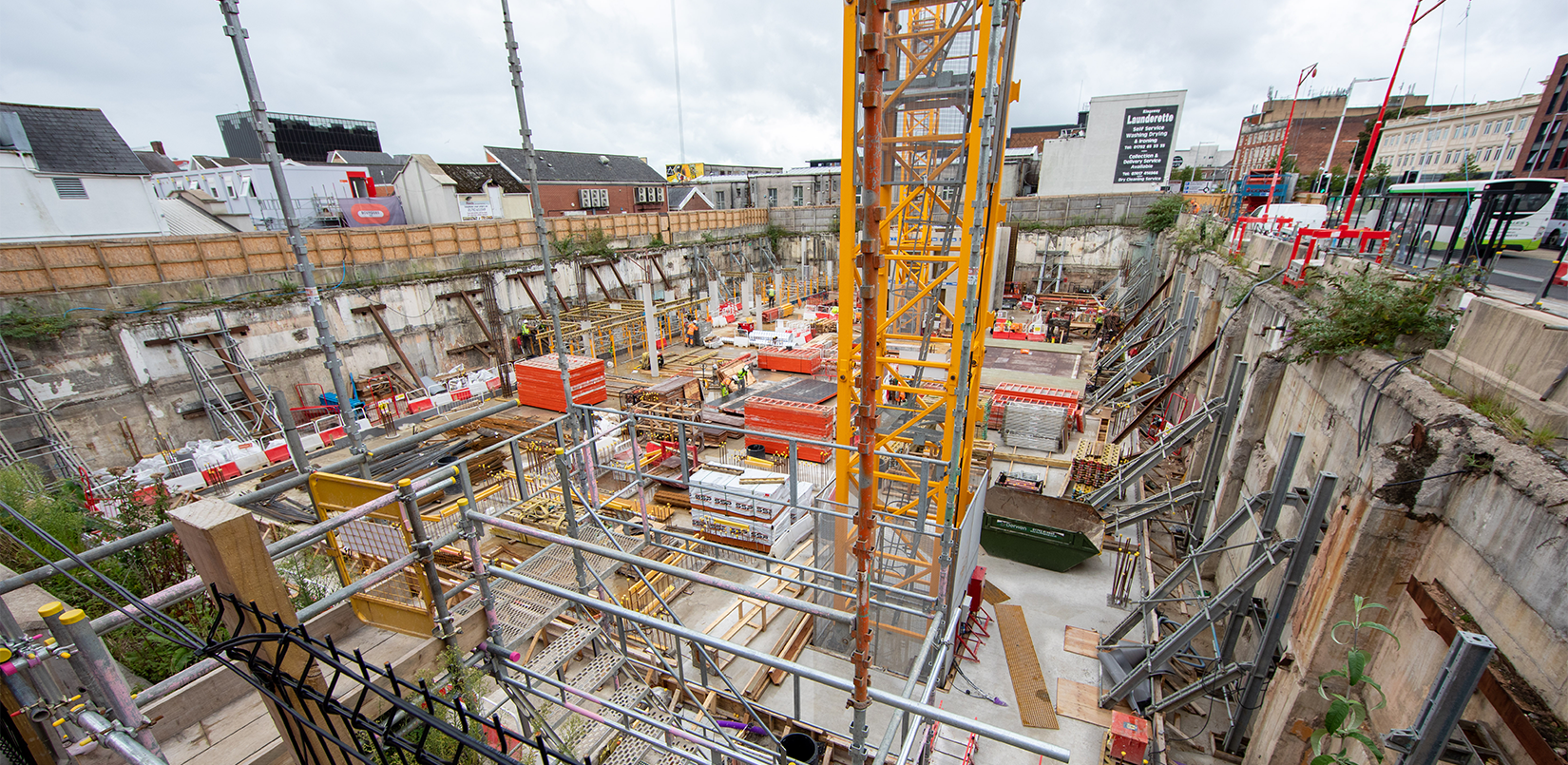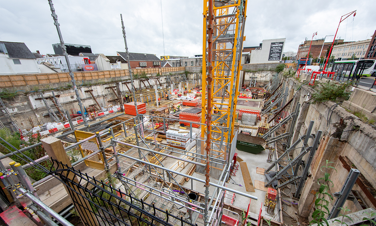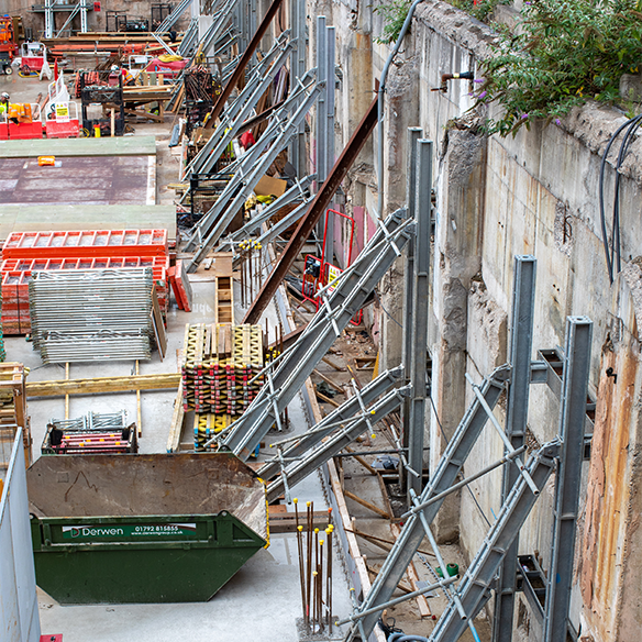 Early-stage collaboration with construction company Bouygues UK, has led to the successful design and installation of a basement propping scheme on a high-profile city centre redevelopment in Swansea.