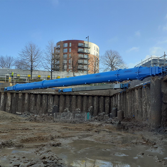For particularly complex areas, including one corner supported by two 42-metre Super Bracing Struts, our engineering team designed and tailored solutions to manage the unstable and contaminated ground. Additionally, 20-metre BeamBridges were installed to allow heavy machinery and excavators to safely traverse the site, demonstrating the versatility of modular bridging equipment in a demanding construction environment.