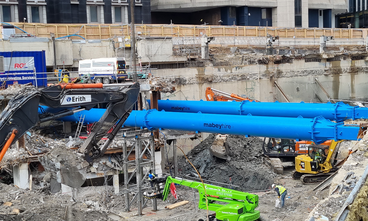 Major Projects Sales Manager at Mabey Hire explained: “Our Super Bracing Strut was the perfect fit for this project due to its modular construction, meaning it could be split into two sections and easily transported to site. Individually, each section was within the weight limit of the onsite tower crane, enabling it to be safely lifted into position and assembled on site.